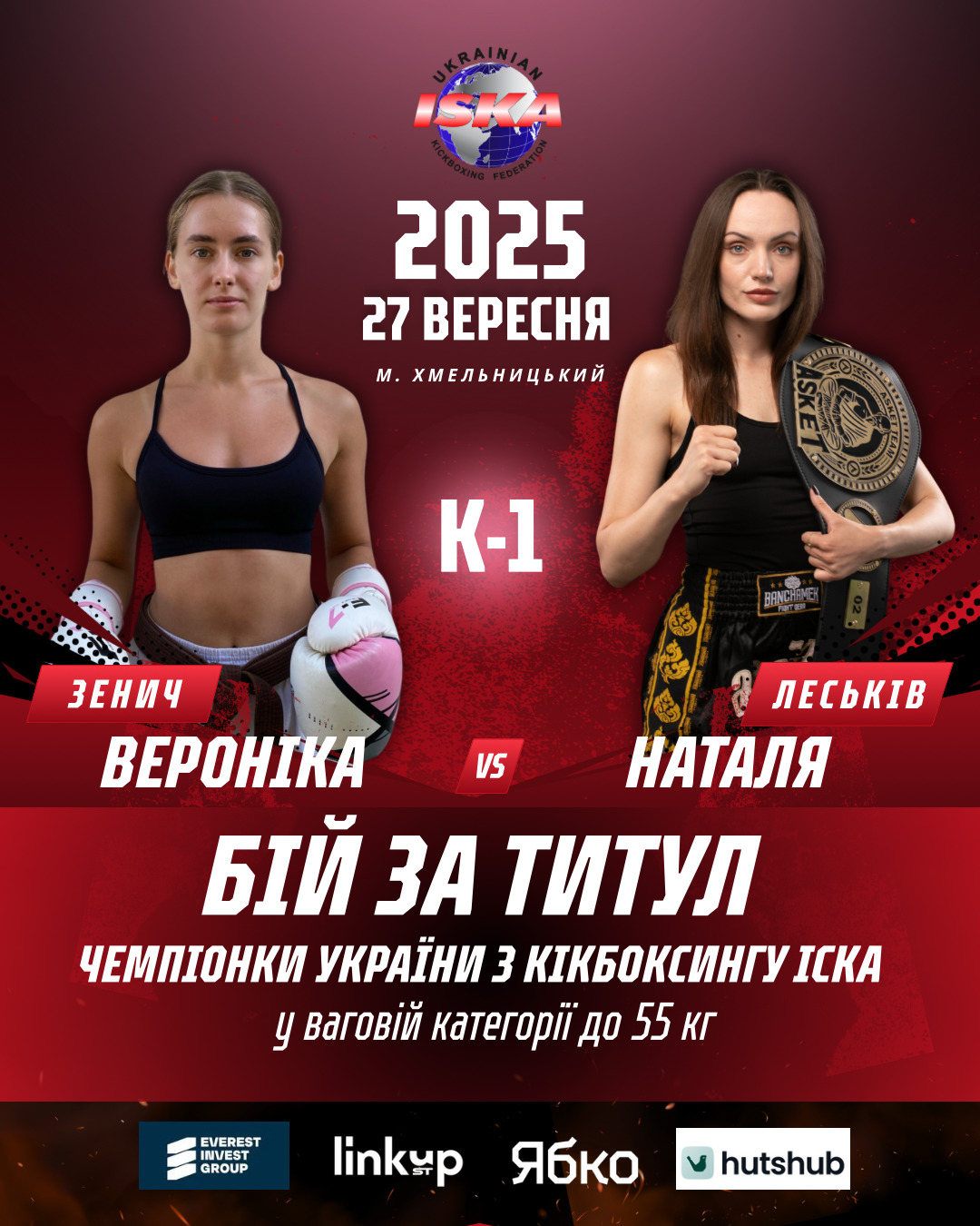 27 вересня 2025 року у місті Хмельницькому відбудеться професійний поєдинок за титул чемпіонки України з кікбоксингу за версією ISKA.