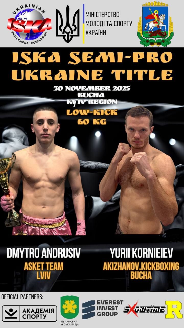 Через травму представника Харківської області Олександра Чурсіна в ринг вийде Юрій Коренєєв, спортсмен Київського обласного осередку з кікбоксингу «ІСКА», який боксуватиме проти нашого спортсмена Дмитра Андрусіва.